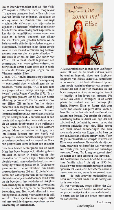‘Die zomer met Elise’ is vaak een ontroerend verhaal, waarin de relatie Roger-Elise en de oorlogsachtergrond goed uitgebalanceerd aan bod komen.’ (Marc Stevens)
